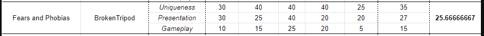 Halloween Horror 3 was posted on October 30, 2020 and “Fears and Phobias” scored 19th place out of 23 entries (not including the bonus entries) with an average score of 25.667. So that means I was in the Top 20!